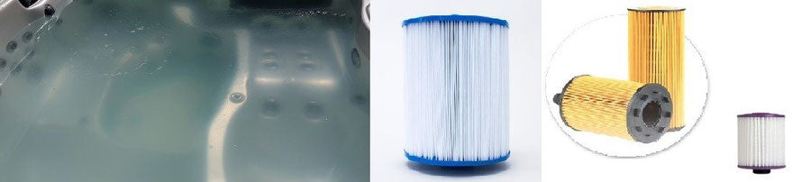 The cloudy Whirlpool water flows through the EGO3 filter cartridge from top to bottom. The entire cross-section is filtered evenly, which almost eliminates clogging.